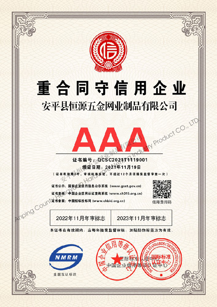 多年來,安平縣恒源五金網(wǎng)業(yè)制品有限公司堅持“科技興企、質(zhì)量立業(yè)”的經(jīng)營理念和“誠心為本、客戶至上”的合作宗旨,優(yōu)化生產(chǎn)工藝,打造優(yōu)質(zhì)產(chǎn)品,提供完善的服務(wù),受到國內(nèi)外客戶的一致好評,產(chǎn)品行銷全國各地,并出口美國、德國、韓國、日本、臺灣等國家和地區(qū)。